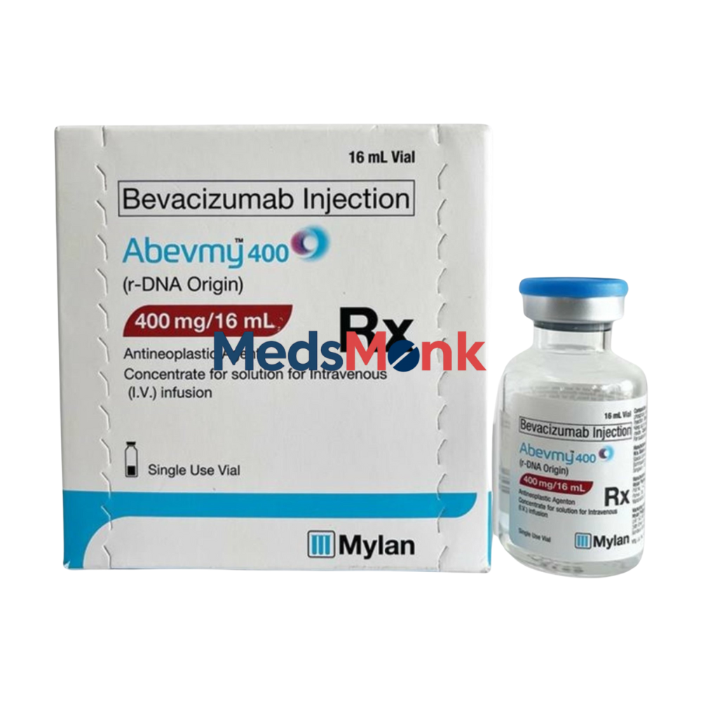 Abevmy 400 mg Vial contains Bevacizumab, an anti-cancer monoclonal antibody used to treat various advanced solid tumors. It works by restricting blood supply to cancer cells, helping slow tumor growth. Administered under oncologist supervision.