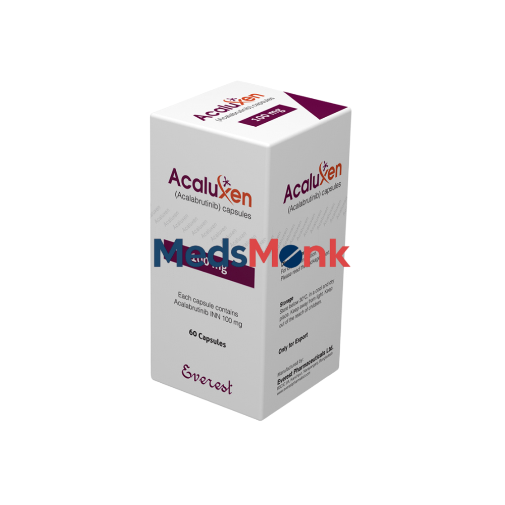 Acaluxen 100 mg Capsule contains Acalabrutinib, a targeted anticancer medicine used to treat certain blood cancers. It helps slow cancer cell growth and disease progression under oncologist supervision.