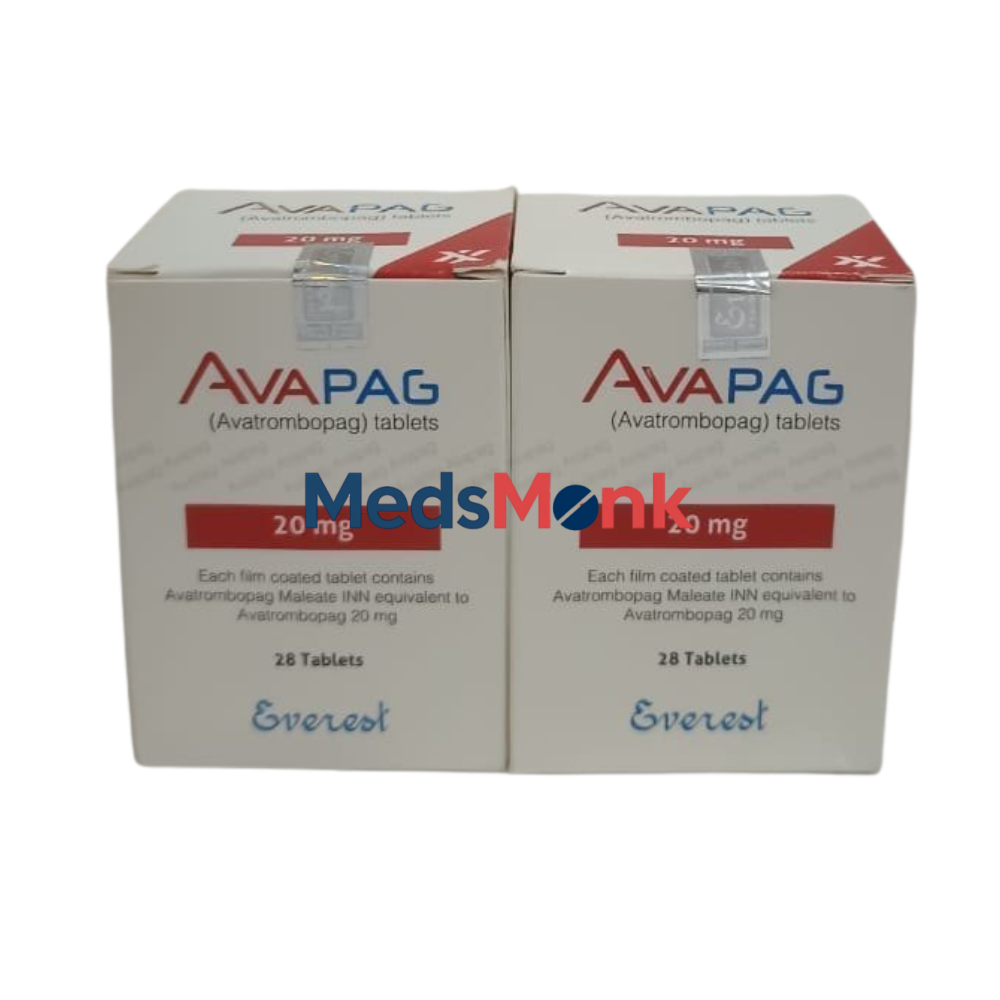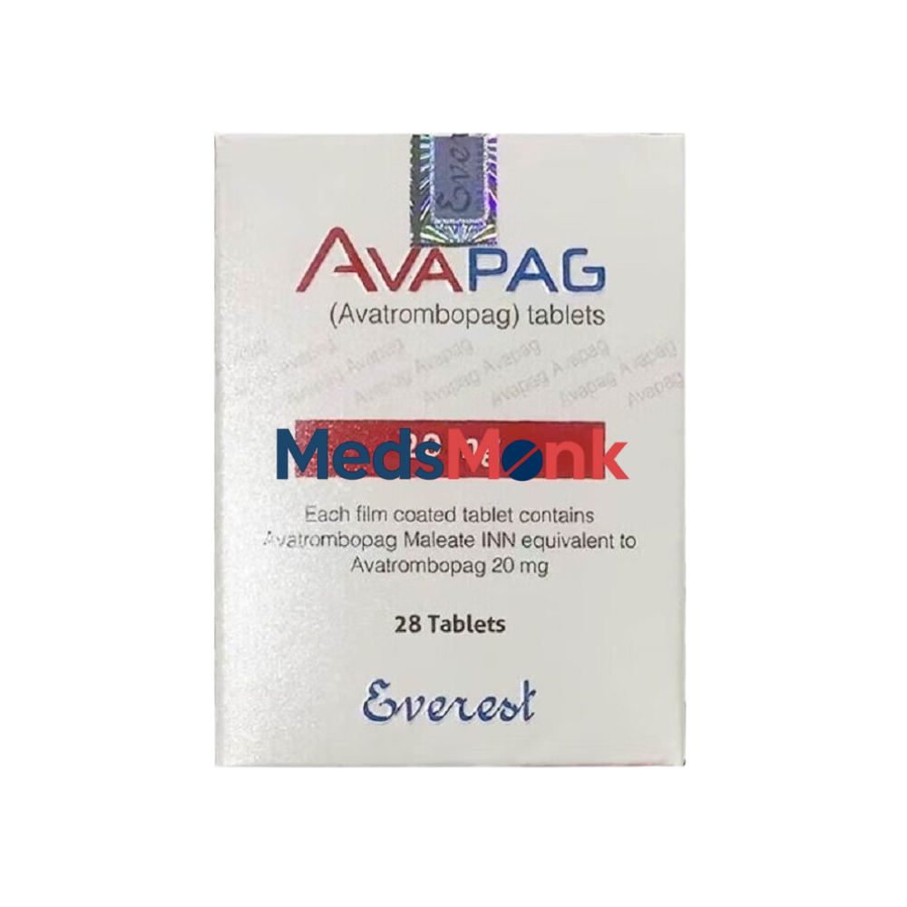 Avapag 20 mg Tablet contains Avatrombopag, a thrombopoietin receptor agonist used to increase platelet counts in patients with chronic liver disease or chronic immune thrombocytopenia (ITP). It helps reduce bleeding risk before medical or dental procedures.
