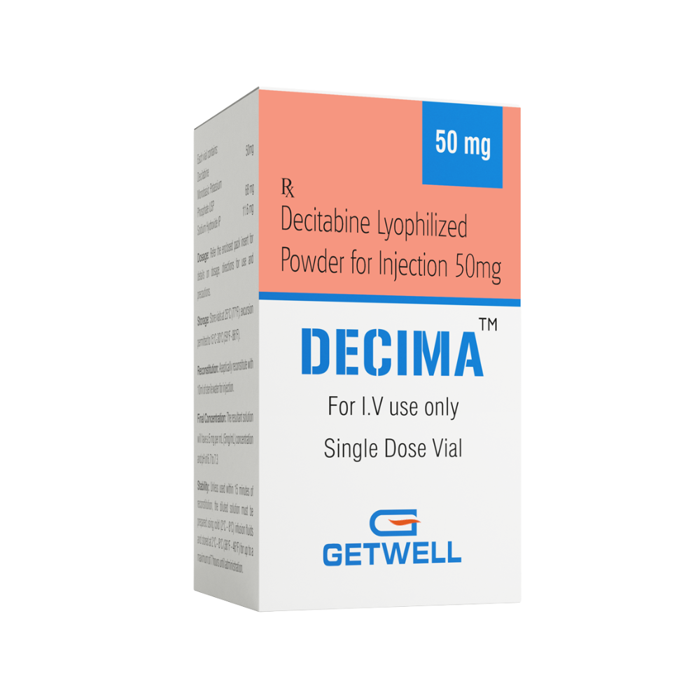 Introducing Decima 50mg Injection, a powerful treatment specifically formulated for individuals battling acute myeloid leukaemia (AML) and myelodysplastic syndrome (MDS). Each injection contains Decitabine (50mg), a proven medication that works to inhibit the growth of cancer cells, promoting healthier blood cell production. Decima 50mg Injection is not only effective for AML and MDS but may also be utilized for other medical conditions at your doctor's discretion. Experience the potential for improved health and well-being with Decima 50mg Injection, a vital ally in your fight against blood cancer. Consult your healthcare provider to see if this treatment is right for you.