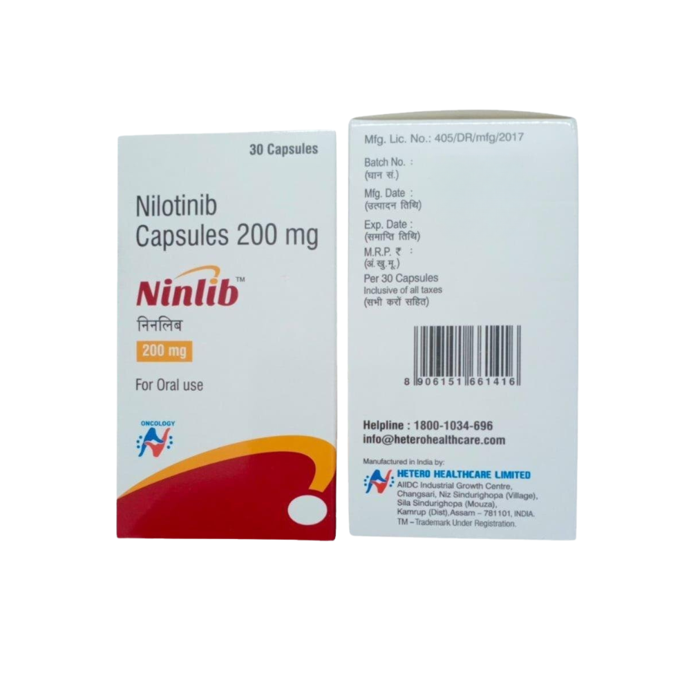 Ninlib 200 mg is a prescription anticancer medication used to treat Philadelphia chromosome–positive chronic myeloid leukemia (Ph+ CML), a type of blood cancer. Each capsule contains 200 mg of nilotinib, a targeted tyrosine kinase inhibitor. Ninlib works by blocking the abnormal BCR-ABL protein signals in leukemia cells, stopping those cells from multiplying and causing them to die. This medicine should be taken exactly as prescribed by a doctor.
